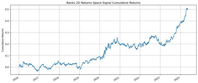 plt.title(’Banks 2D Returns Space Signal Cumulative Returns’)